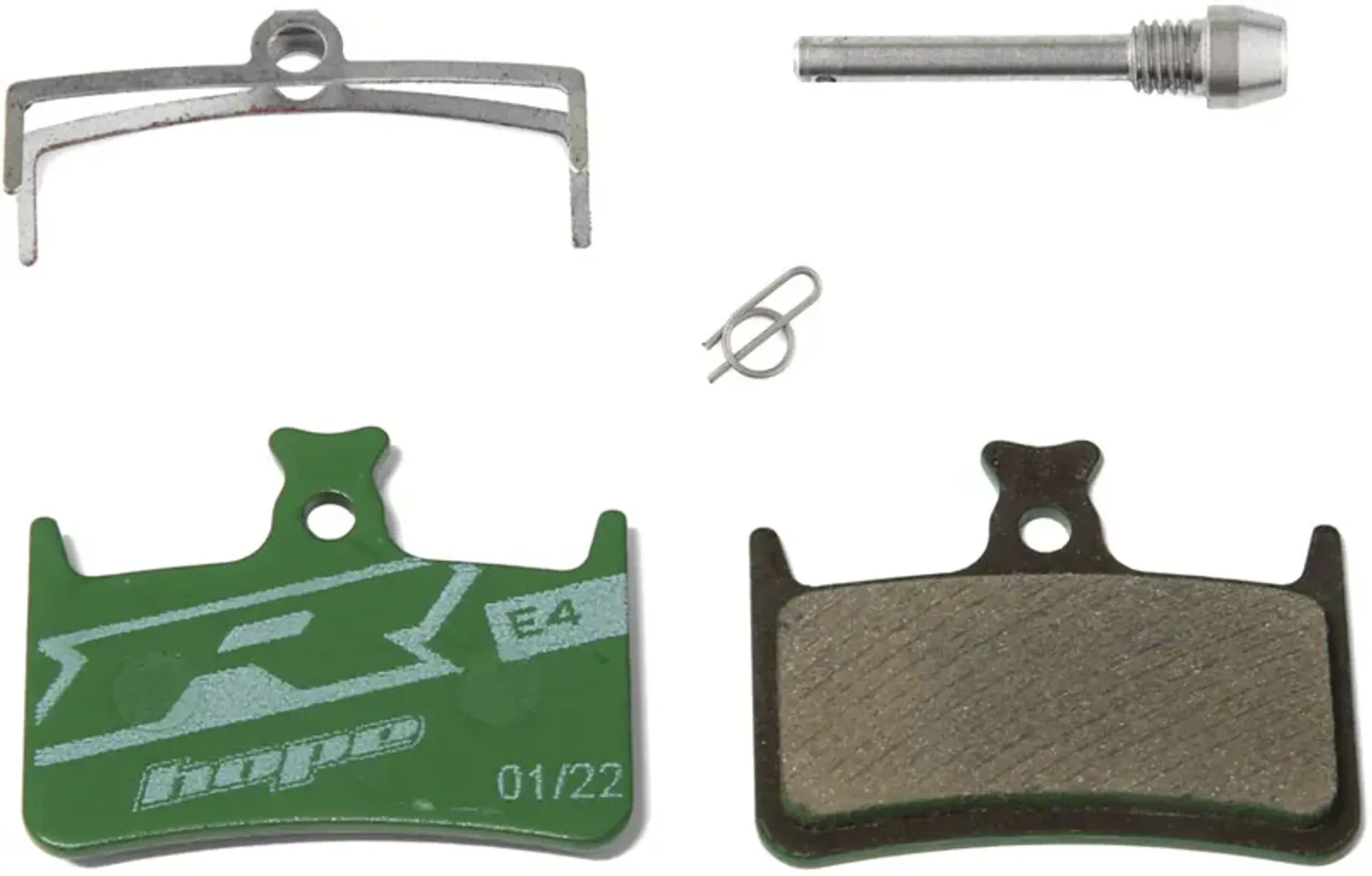 Hope disc brake pads are designed for use with E4, RX4+, RX4-SH and Mono M4 disc brake calipers. Includes bolt and pad spring.
